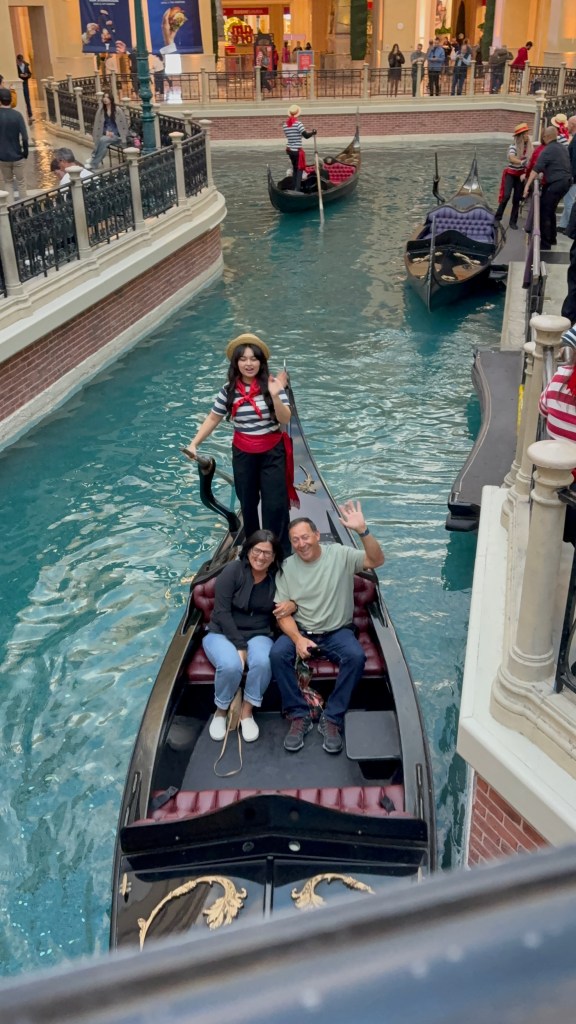 It really was spectacular!! From there we walked over to the Venetian and walked around a bit. While Barbara and Frank took a Gondola ride, Greg and I ate icecream. It was a win win.