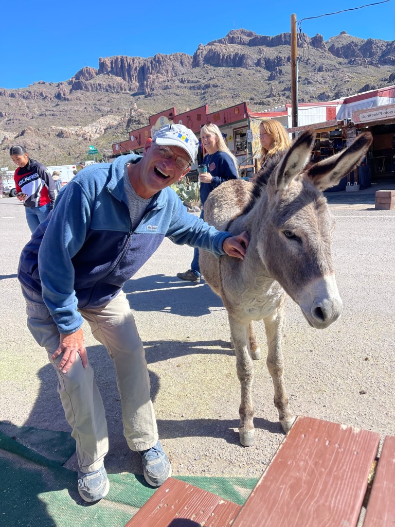 Onward we went to Oatman, Arizona where the donkeys roam free after some gold miners let them loose many years ago. It’s a fun town with some nice free BLM camping.