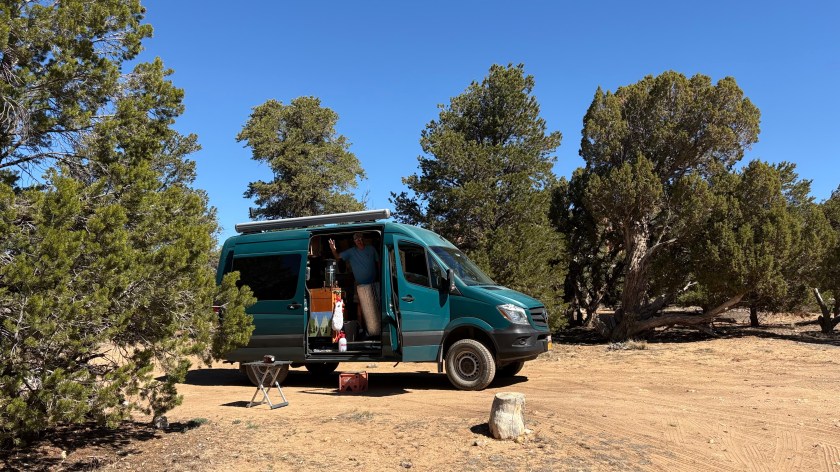 Next day, after checking the weather we decided to head to higher elevations. A heat spell is coming and it’s a perfect time to head to the mountains of Utah. We decided not to go to Bryce a few weeks back because it was super cold there but this week it will be in the 70’s. So we headed north towards 70 and then west kind of backtracking. We decided to stay overnight at Green River Statepark. It was $45 a night which is kind of steep for this area but it was worth it as the showers were amazing and the camp spot was very nice. I was able to wash the van. It really needed it after all the red dust and dirt.