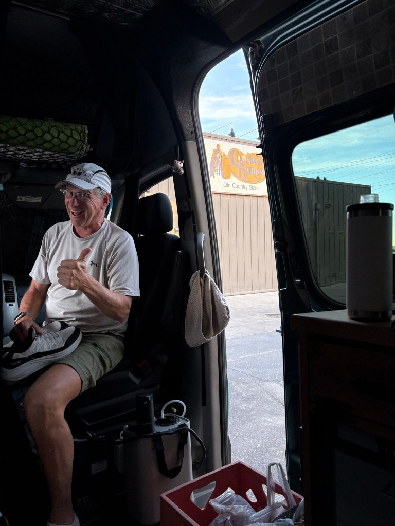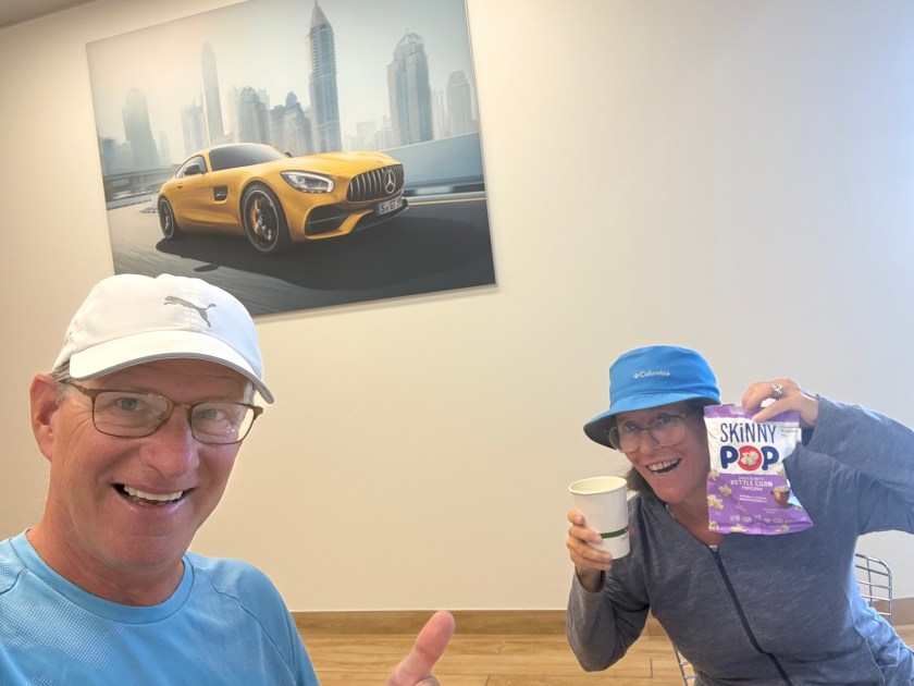 We made an appointment for the next day to have the oil changed at the Mercedes Benz dealer in Pklahoma City. Our service person tried their best to pill the wool over our eyes by telling us they have a special oil change deal going on for Eleven hundred dollars which includes new windshield blades. I had to do everything in my power not to laugh in her face. She must have thought this was my first rodeo. Anyway, we decided on the oil change which was expensive enough in itself and then we also decided to get the fuel filter changed as well as the whole check eveything service. All in all, it came to $835. Its CRAZY how expensive it is to service the van. We tried to make up for the cost by eating and pocketing as many snacks as we could from their free snack bar.