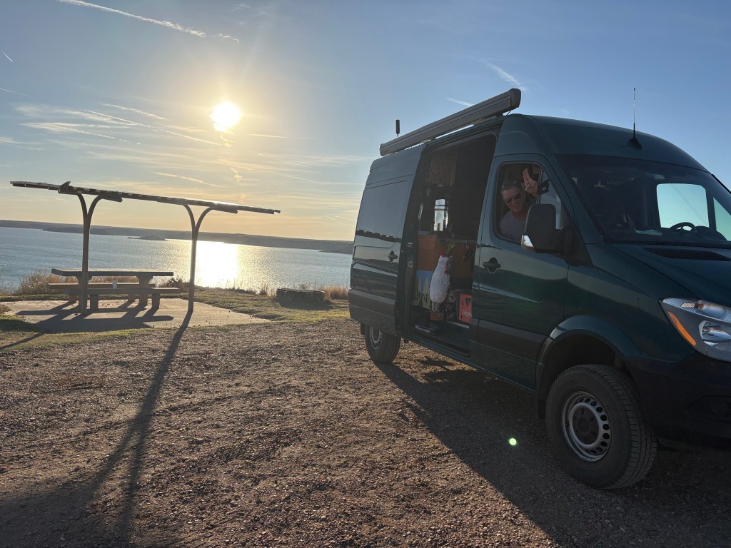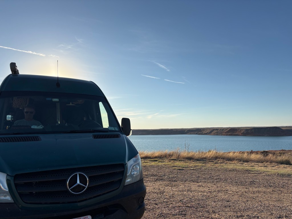 The sites around Lake Meredith are all free except for if you want electricity. I have no idea how much those sites are as we haven’t really needed electric because our solar system has been fully charged. They even have showers here for free. I’m surprised this place isn’t packed out. It could be the 50 mph winds are keeping everyone home.