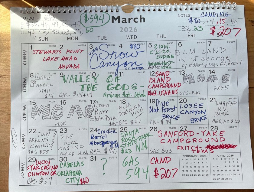 We headed further east to a beautiful state park overlooking a lake. The San Jose State Park. We got site number 26 in honor of my son’s birthday tomorrow, March 26. Happy Birthday Kenny.
